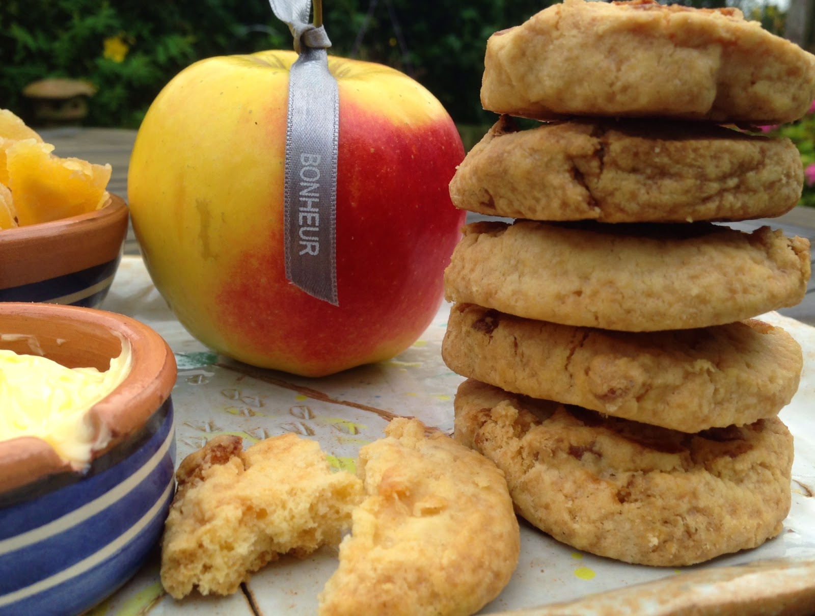 150gr de beurre demi-sel, 150 gr de farine, 100 gr de maïzena, 80 gr de cassonade, 1CC de levure chimique, 1 jaune d’œuf, 30 gr de pommes séchées.